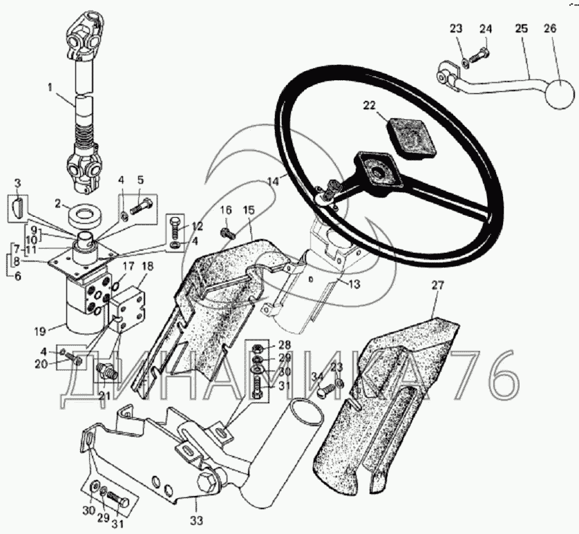 Перечень комплектующих от Установка рулевого колеса на БелАЗ-7823