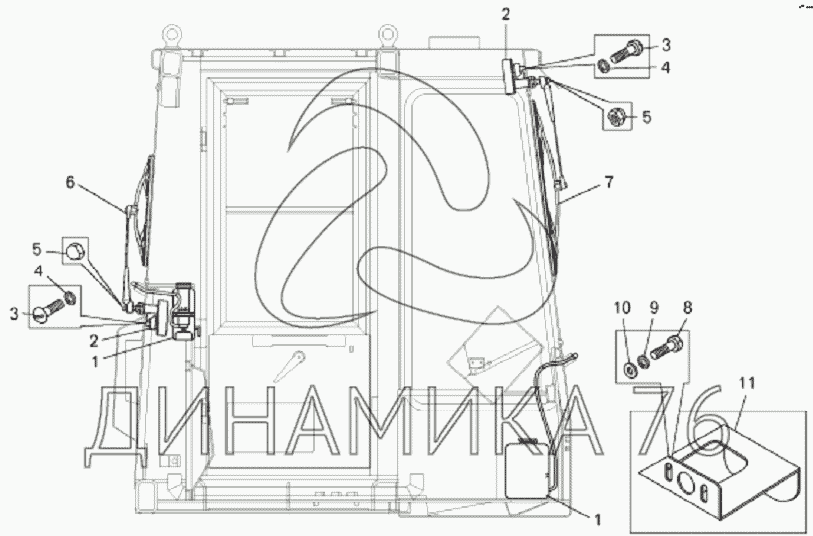 Перечень комплектующих от Установка стеклоочистителей и стеклоомывателей на БелАЗ-7823