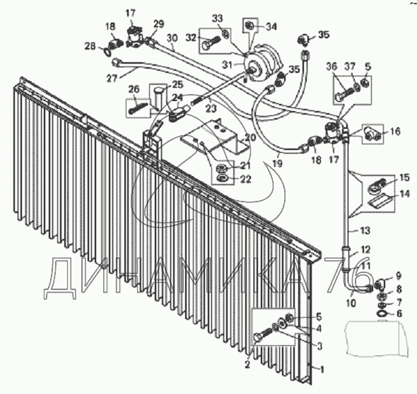 Перечень комплектующих от Жалюзи радиатора и их привод на БелАЗ-7823
