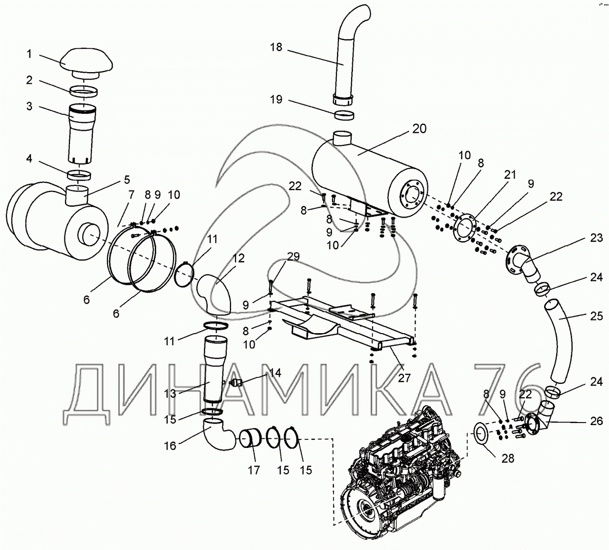 Перечень комплектующих от Система всасывания и выхлопа на TL-155