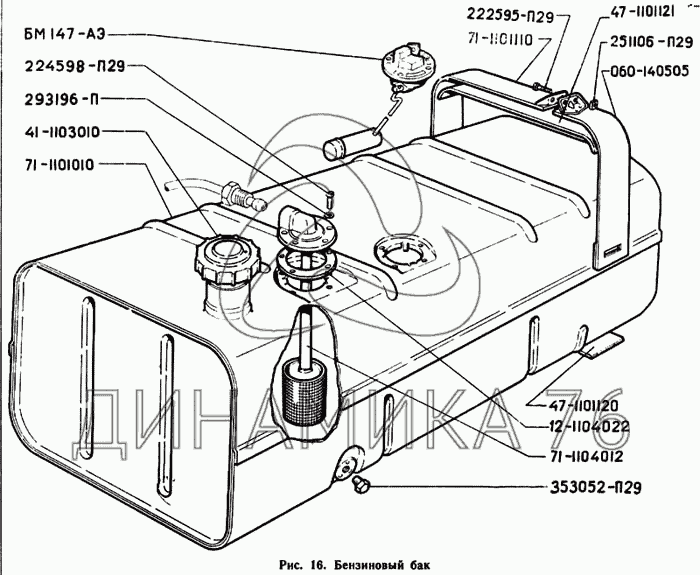 Перечень комплектующих от Бензиновый бак на ГАЗ-71
