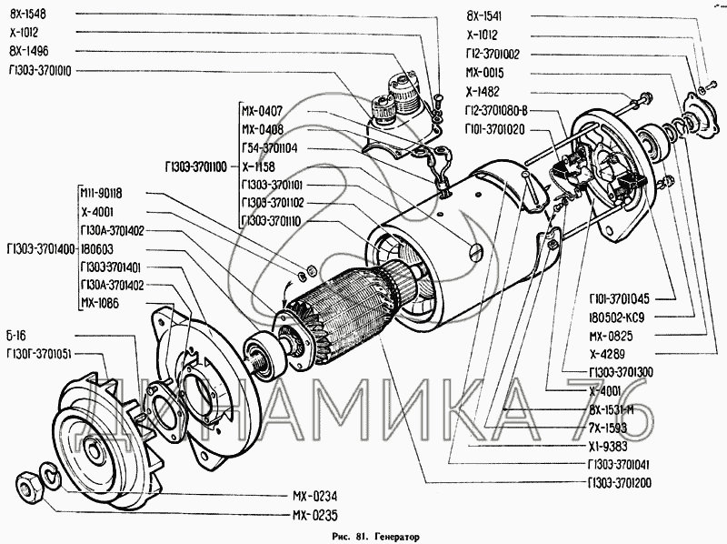 Перечень комплектующих от Генератор на ГАЗ-71