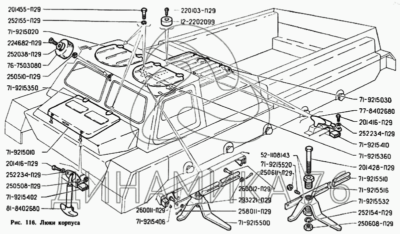 Перечень комплектующих от Люки корпуса на ГАЗ-71