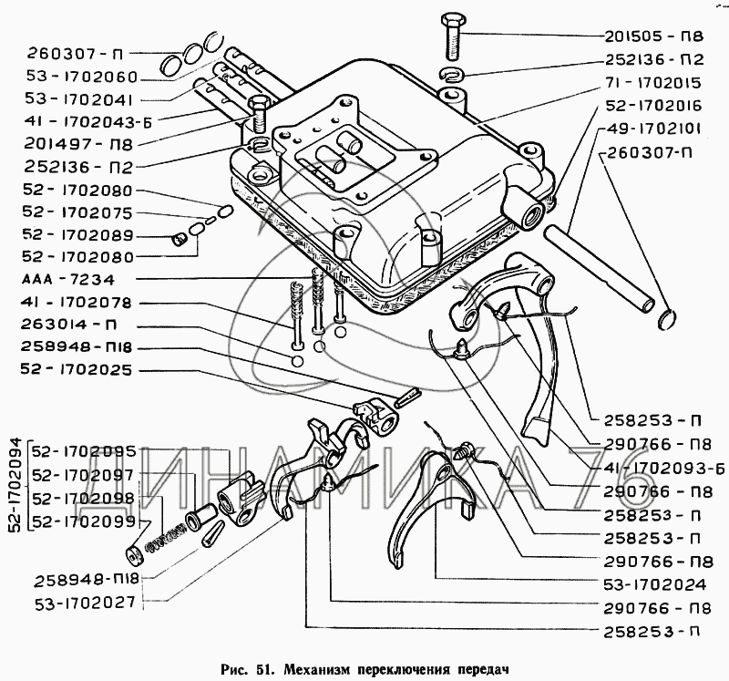Перечень комплектующих от Механизм переключения передач на ГАЗ-71