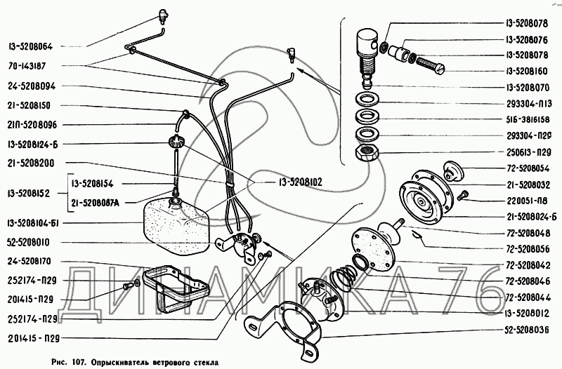 Перечень комплектующих от Опрыскиватель ветрового стекла на ГАЗ-71