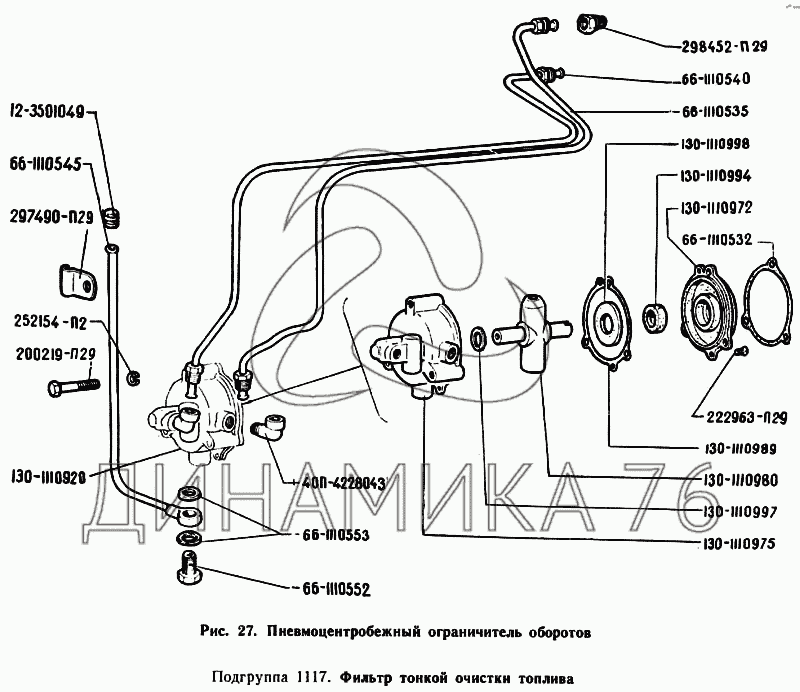Перечень комплектующих от Пневмоцентробежный ограничитель оборотов на ГАЗ-71