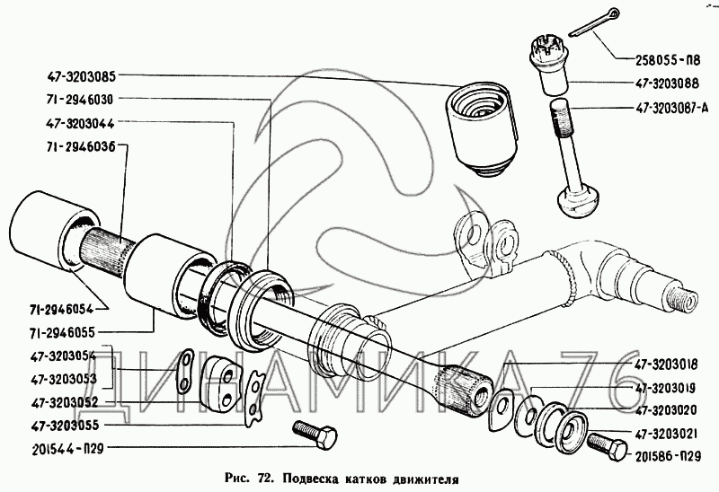 Перечень комплектующих от Подвеска катков движителя на ГАЗ-71