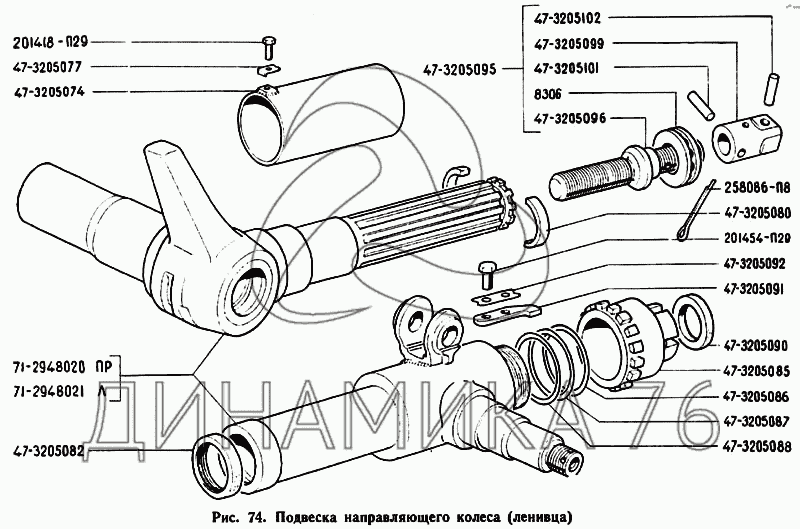 Перечень комплектующих от Подвеска направляющего колеса (ленивца) на ГАЗ-71