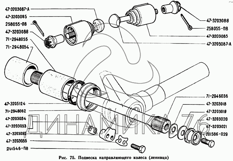 Перечень комплектующих от Подвеска направляющего колеса (ленивца) на ГАЗ-71