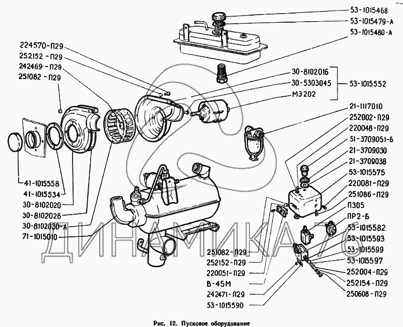 Перечень комплектующих от Пусковое оборудование на ГАЗ-71