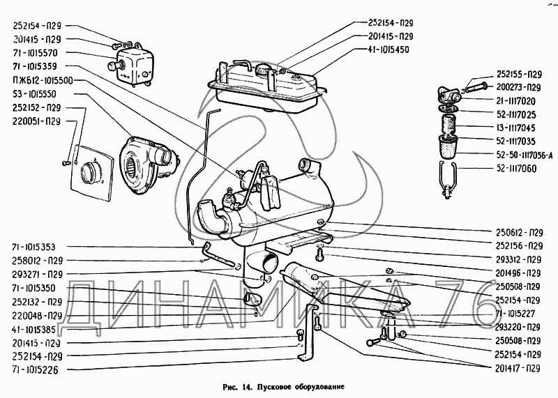 Перечень комплектующих от Пусковое оборудование на ГАЗ-71
