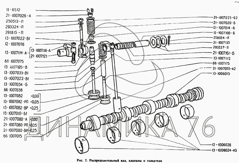 Перечень комплектующих от Распределительный вал. Клапаны и толкатели на ГАЗ-71
