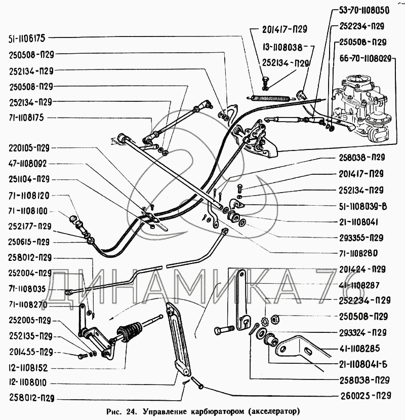 Перечень комплектующих от Управление карбюратором (акселератор) на ГАЗ-71