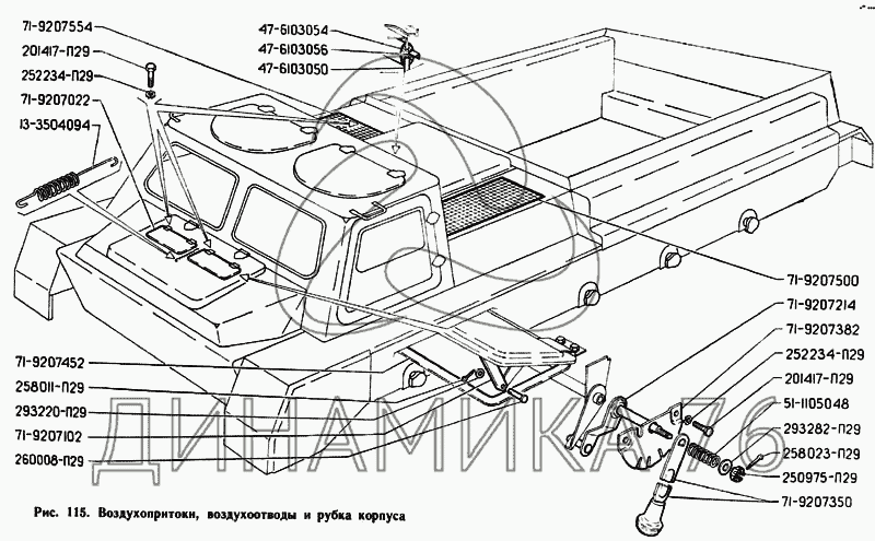 Схемы запчастей предназначены для справочных целей! Мы продаем не все запчасти от Воздухопритоки, воздухоотводы и рубка корпуса на ГАЗ-71, представленные в этом списке.
