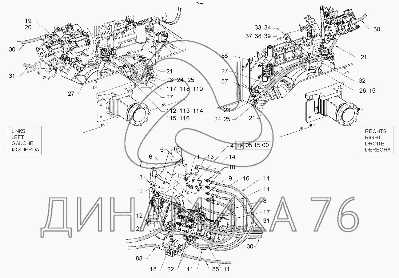 Привод гидравлический мостов полуприцепа