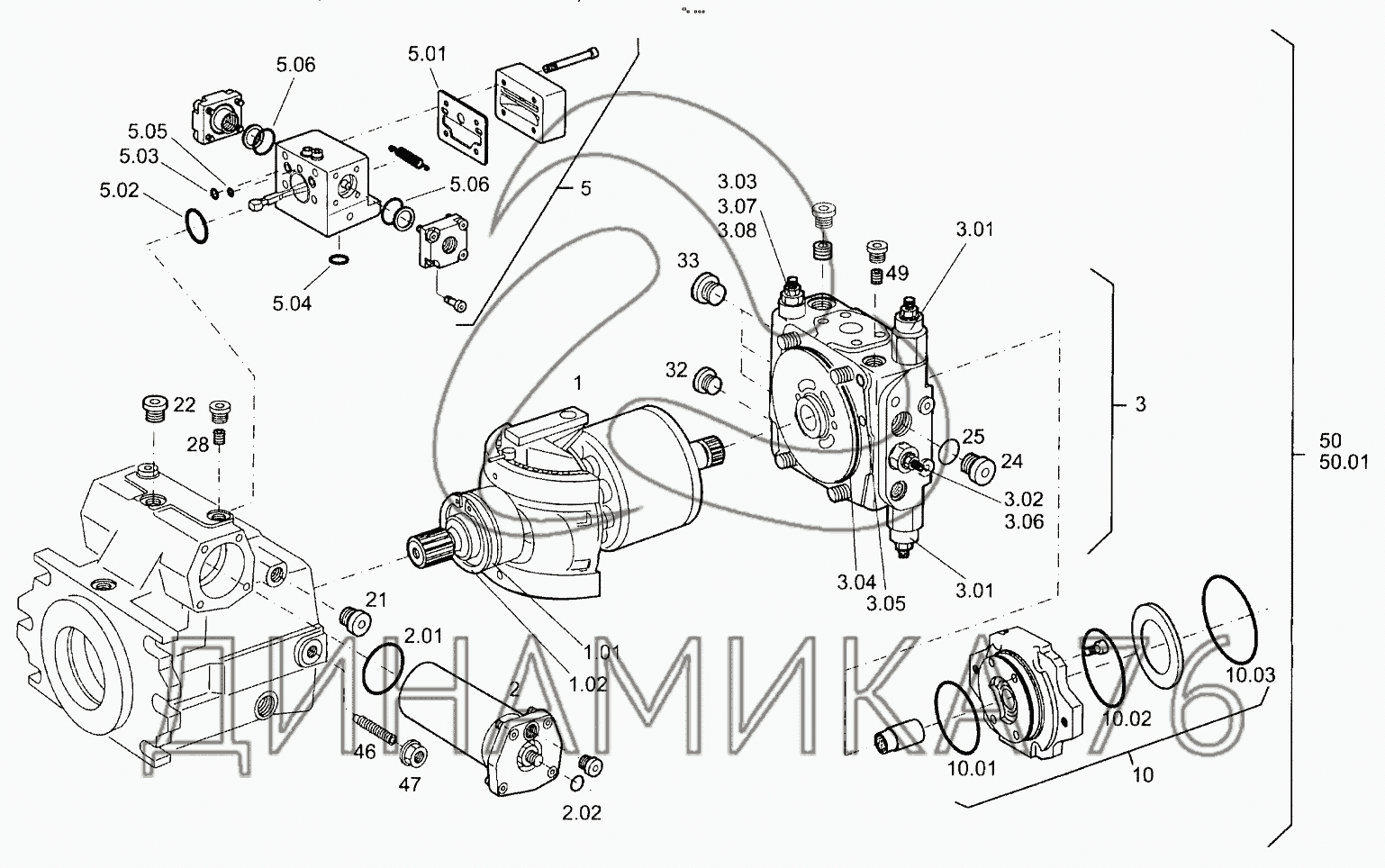 Перечень комплектующих от VARIABLE DISPLACEMENT PUMP (DRIVE) на 3520