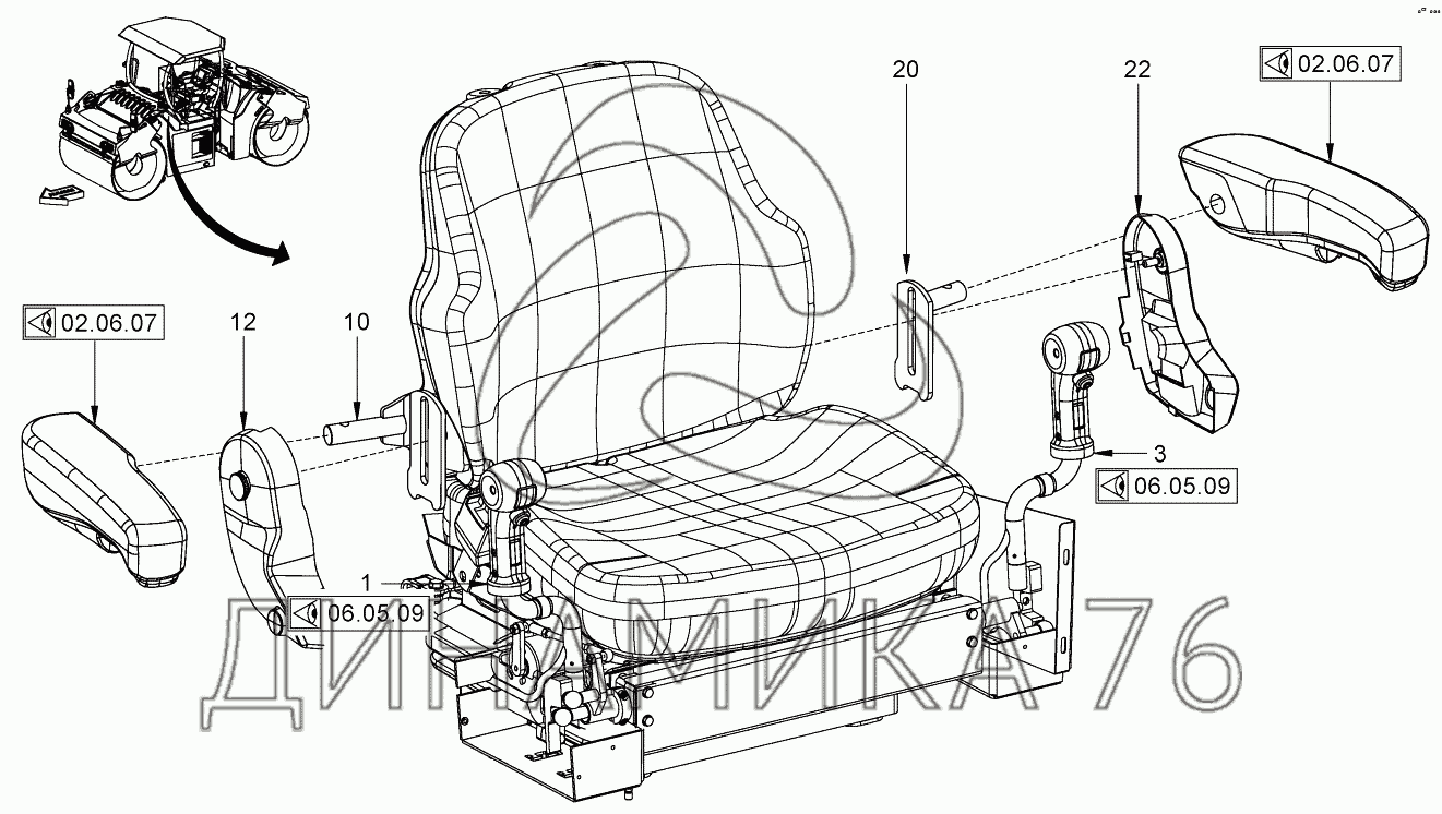 Перечень комплектующих от OPERATOR'S SEAT WITH ADJUSTMENT на HD110