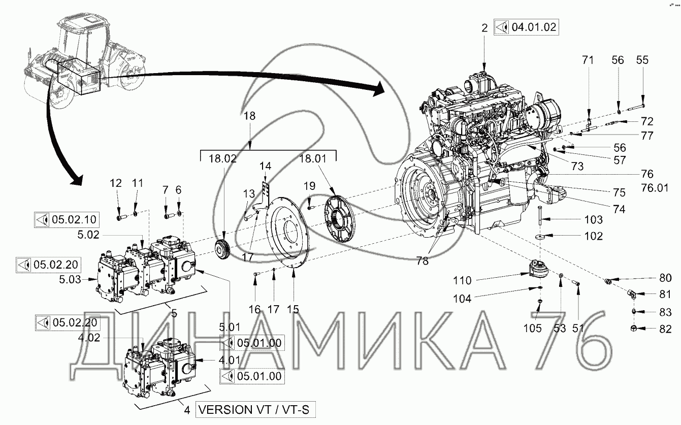 PUMP DRIVE AND ENGINE ASSEMBLY на HD110 (до 2021 г.)