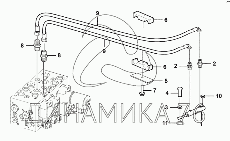 Pipe clamp 4, for fixing steer cylinder hose