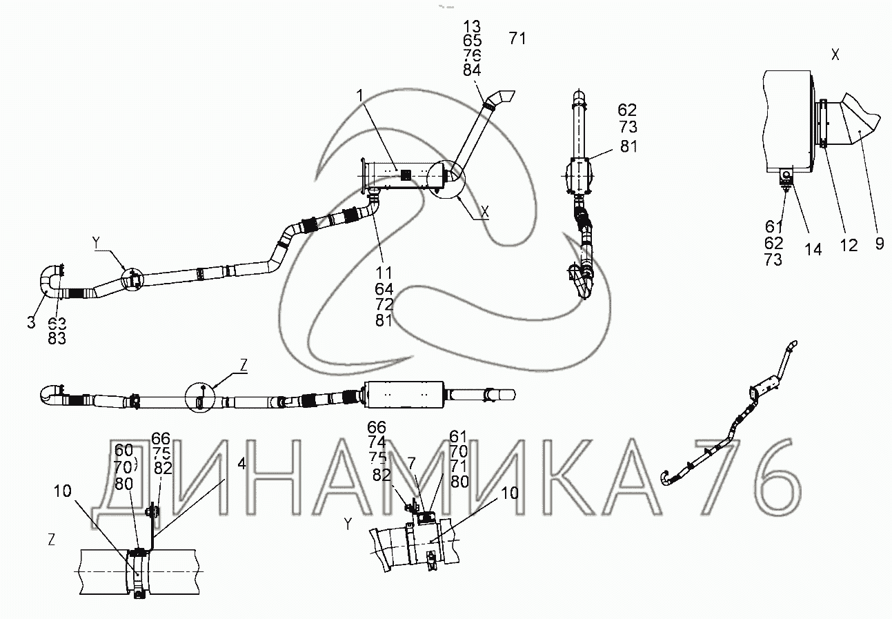 Перечень комплектующих от EXHAUST SYSTEM на LRS 645