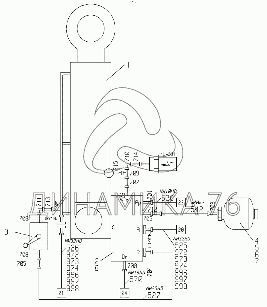 Перечень комплектующих от LUFFING CYL HYDR на LRS 645
