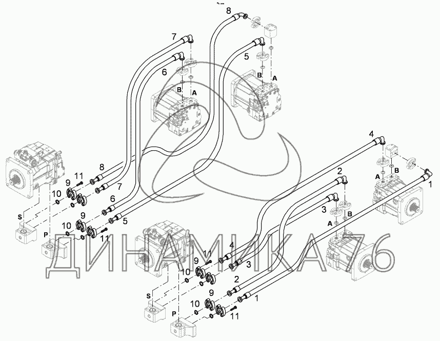Перечень комплектующих от TRAVEL HYDRAULIC на PR754 LITRONIC