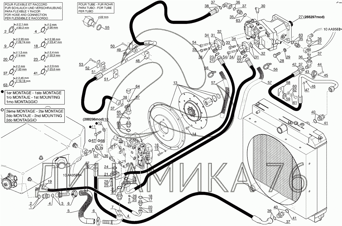 Перечень комплектующих от HYDROSTATIC TRANSMISSION CIRCUIT, 4 AB 236 на MLT 625-75 H
