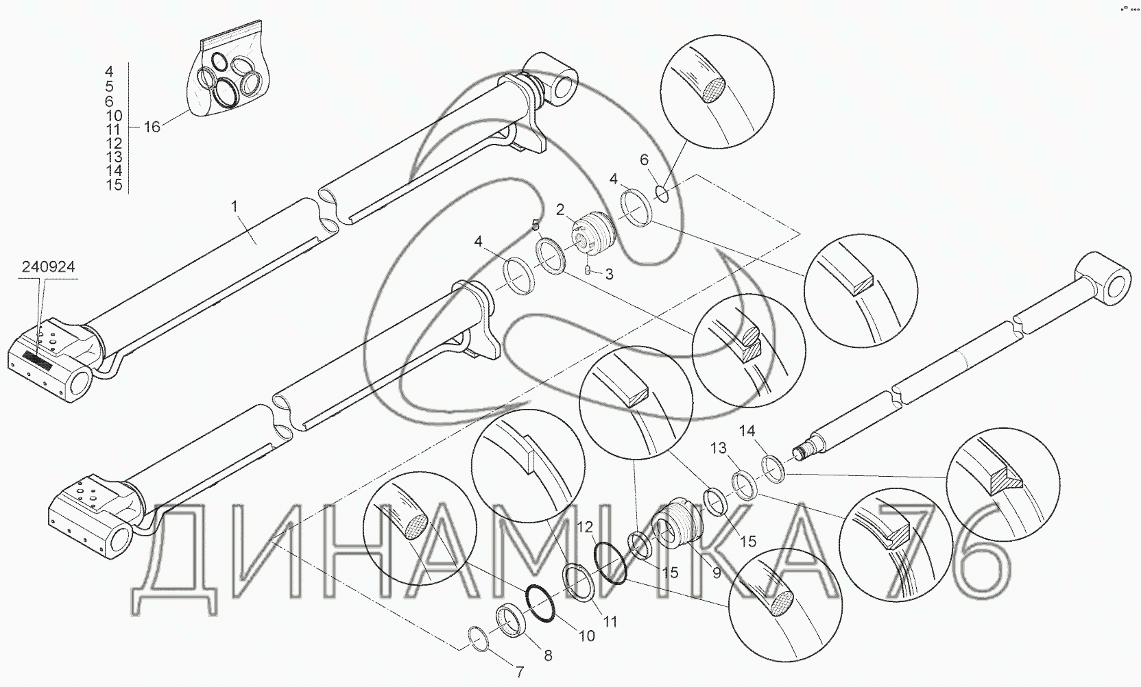 Перечень комплектующих от HYDRAULIC (Telescope cylinder) на MT-X1740SLTS3-E3