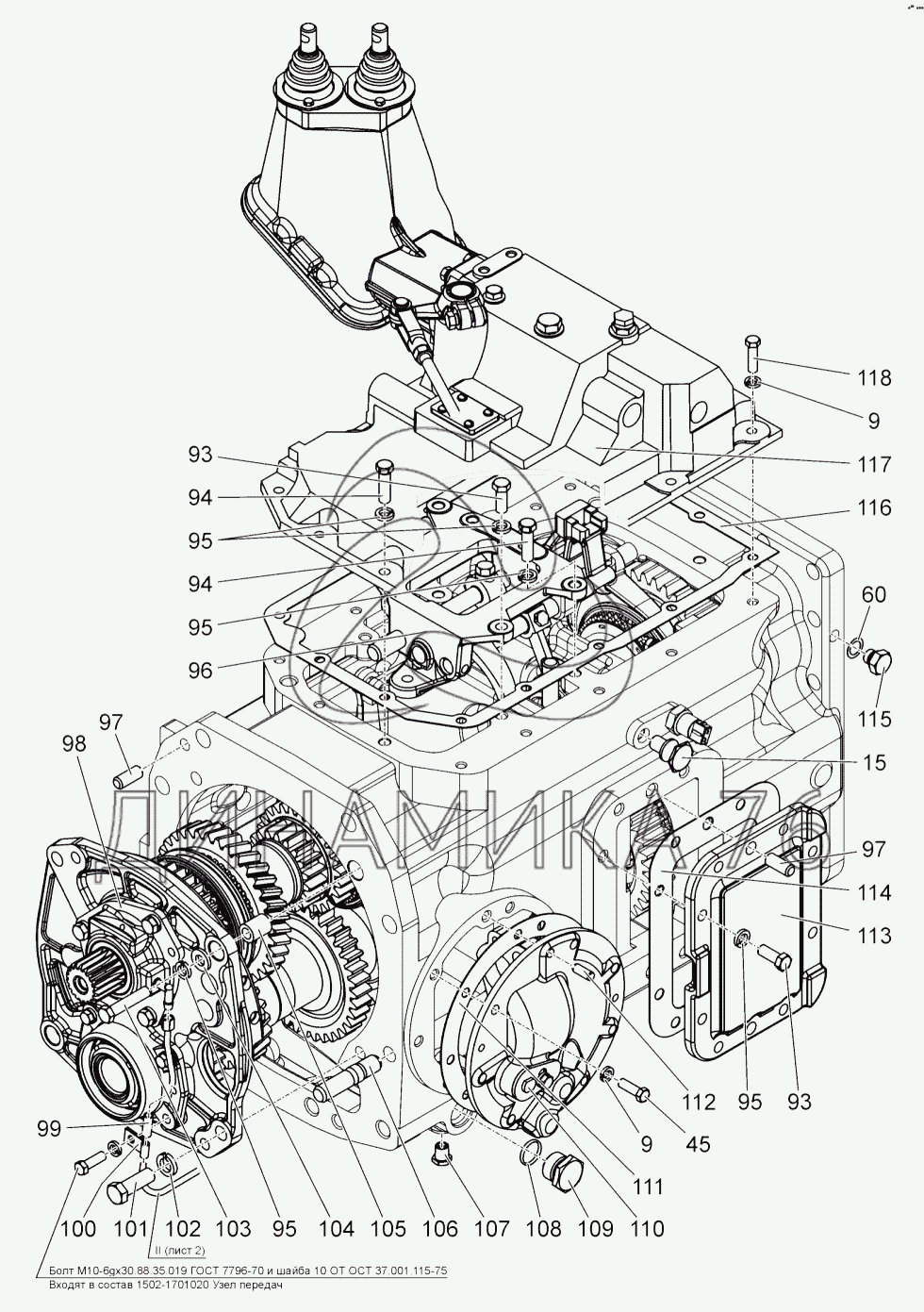 Перечень комплектующих от Коробка передач на БЕЛАРУС 1502