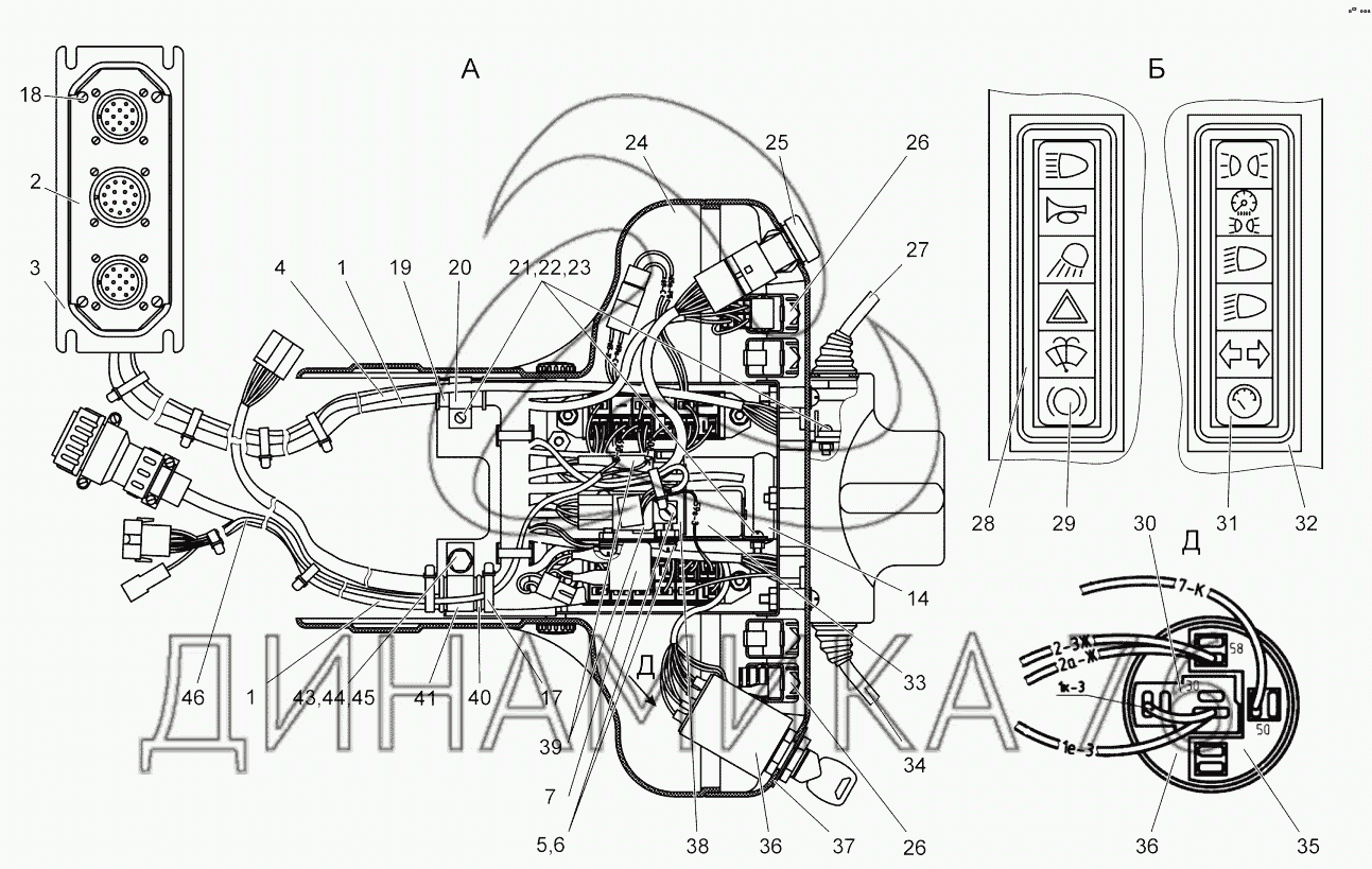 Перечень комплектующих от Щиток приборов на БЕЛАРУС 1502