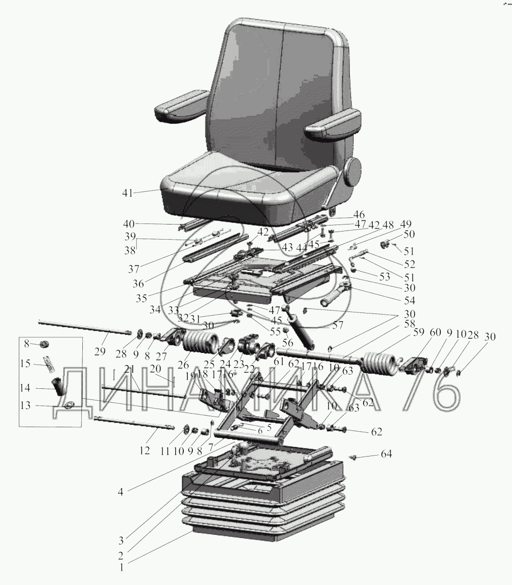 Перечень комплектующих от Сиденье оператора. Салазки. Подвеска на БЕЛАРУС 1502
