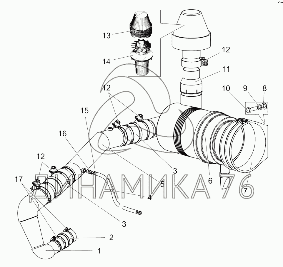 Перечень комплектующих от Система очистки воздуха на БЕЛАРУС 1502