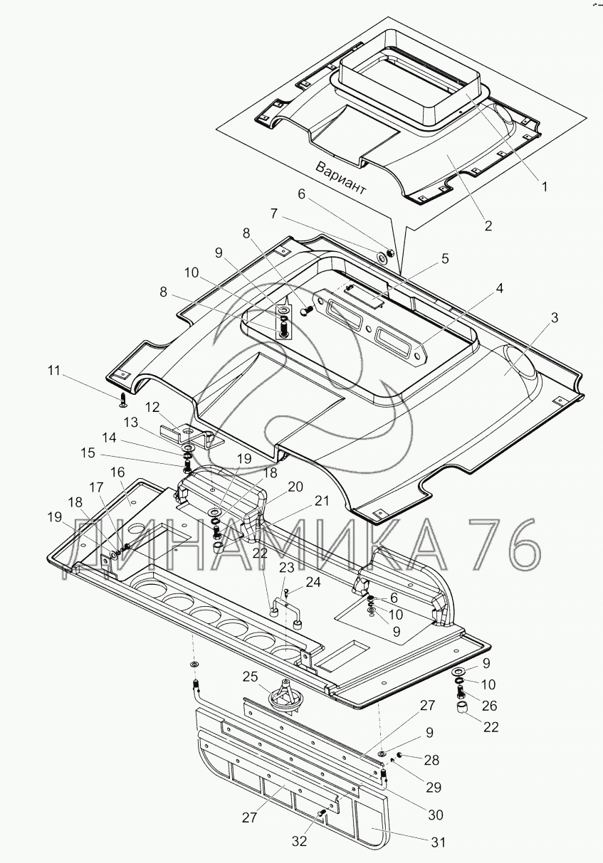 Перечень комплектующих от Установка верхнего пояса. Панель. Козырек на БЕЛАРУС 1502