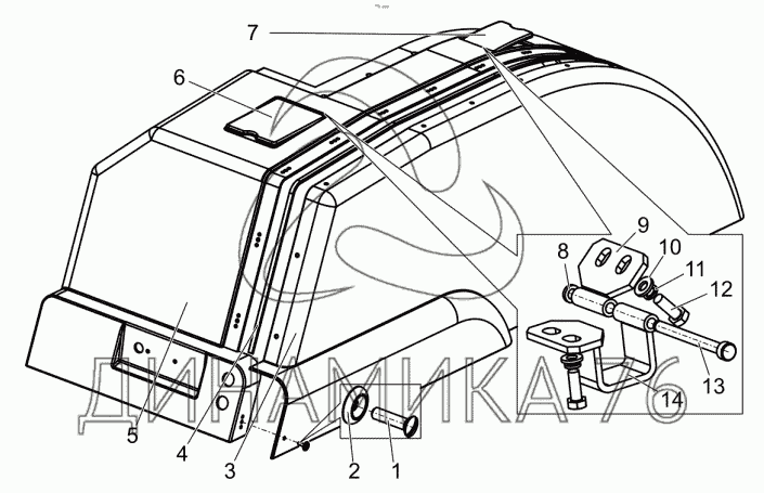 Схемы запчастей предназначены для справочных целей! Мы продаем не все запчасти от Крыло правое на БЕЛАРУС 1502, представленные в этом списке.