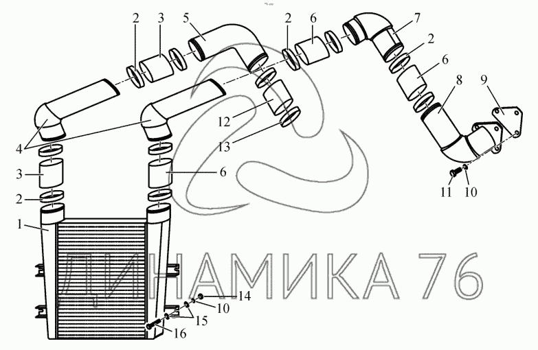 Перечень комплектующих от Охлаждение наддувочного воздуха на БЕЛАРУС 1502