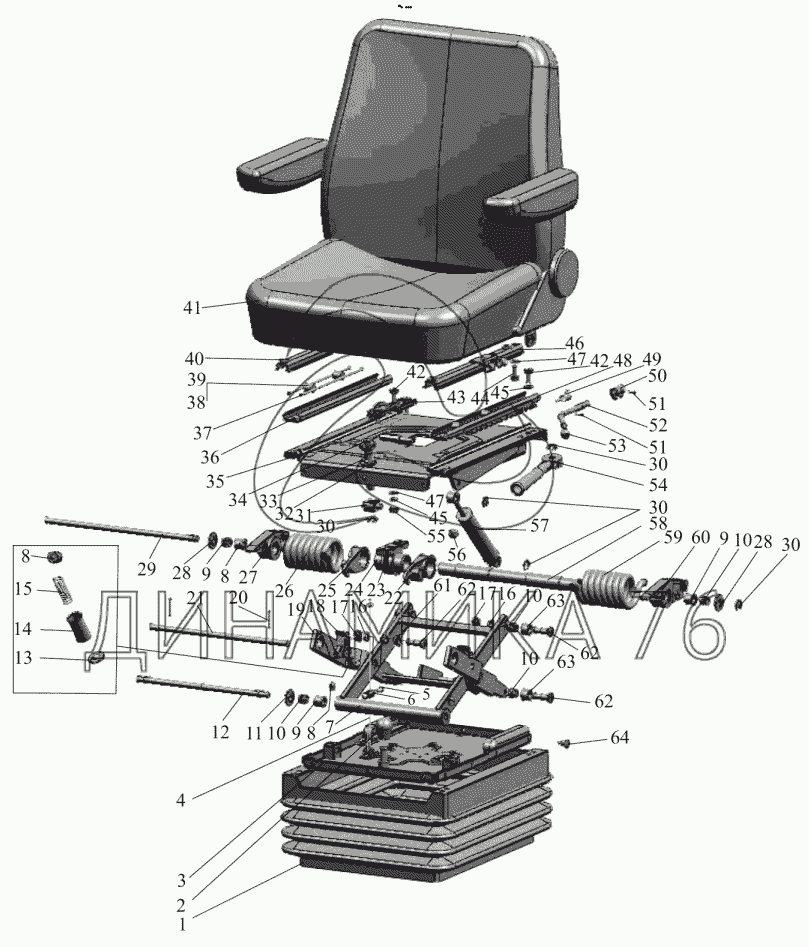 Перечень комплектующих от Сиденье оператора на БЕЛАРУС 1502