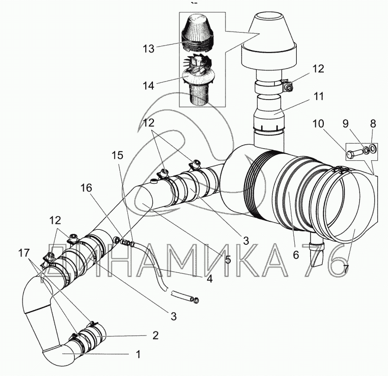 Перечень комплектующих от Система очистки воздуха на БЕЛАРУС 1502