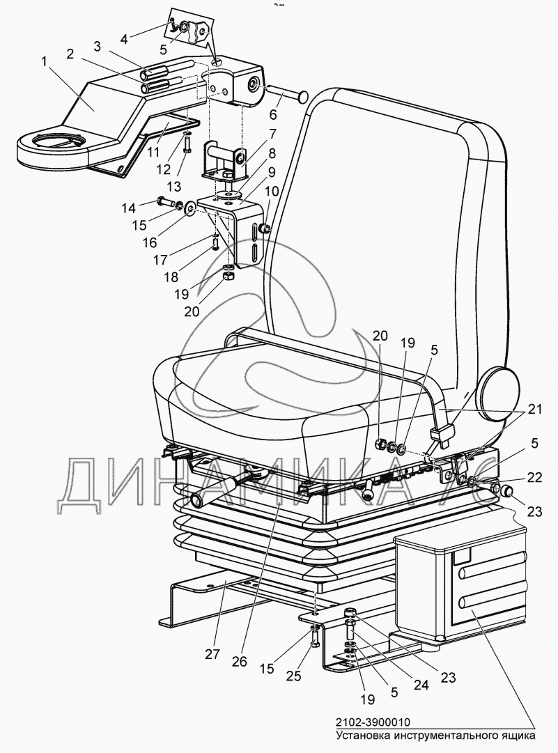 Перечень комплектующих от Установка сиденья. Установка подлокотника. Подлокотник на БЕЛАРУС 1502