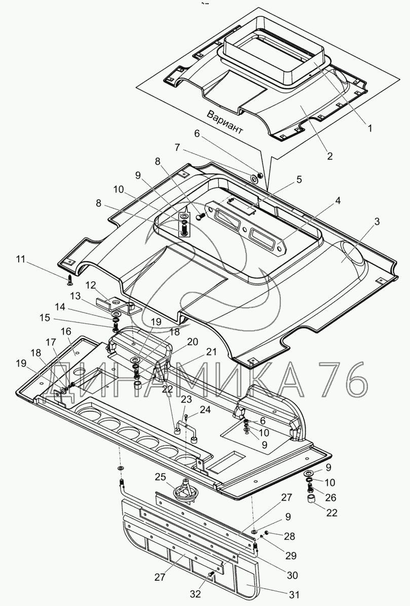 Перечень комплектующих от Установка верхнего пояса. Панель. Козырек на БЕЛАРУС 1502