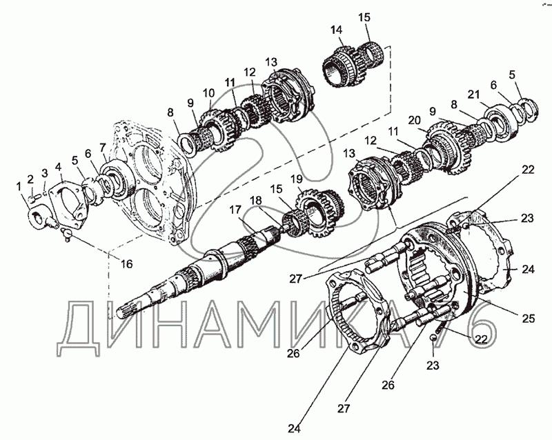 Узел передач и вал промежуточный
