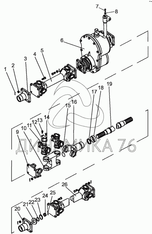 Перечень комплектующих от Привод моста заднего на МЛПТ-354М