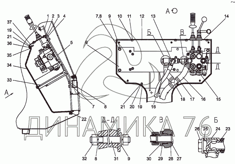 Перечень комплектующих от Установка распределителей (без манипулятора) на МЛПТ-354М
