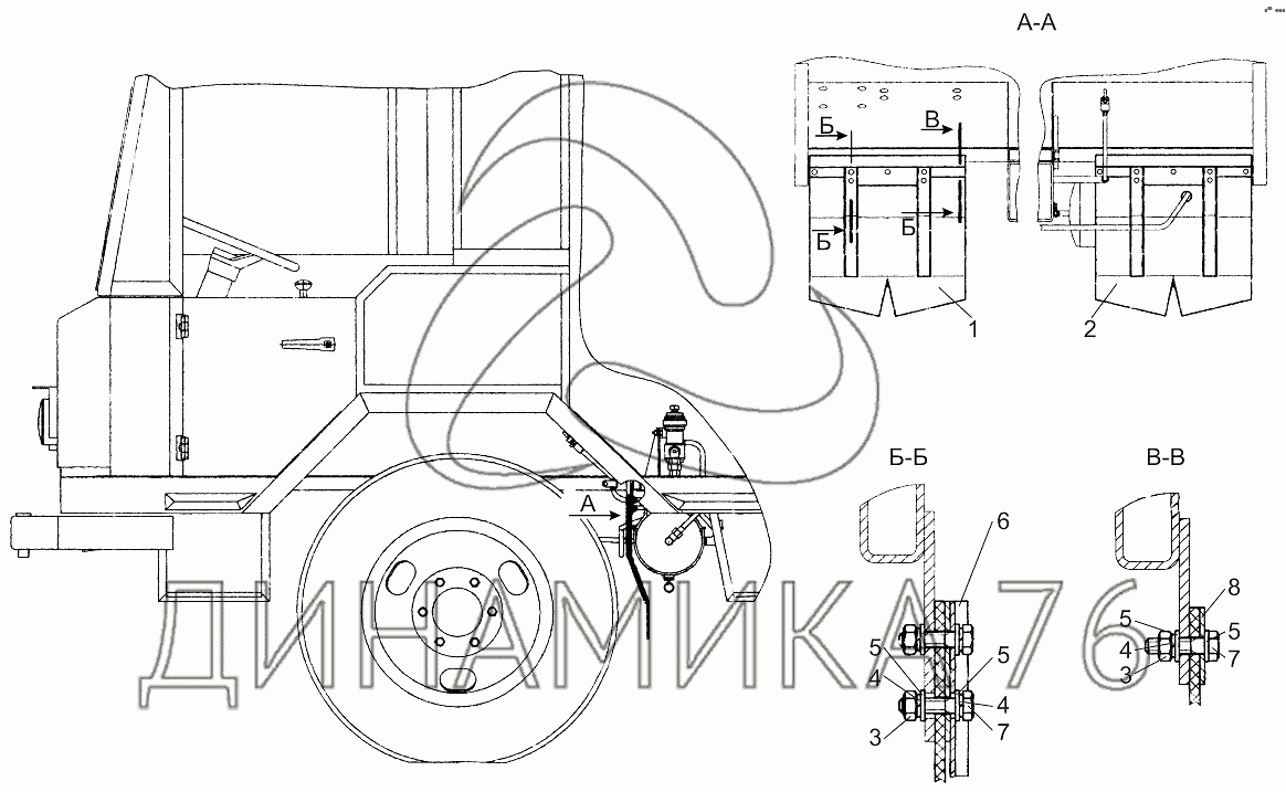 Установка брызговиков Ш353М-8404005 на Ш-353М (до 2015 г.)