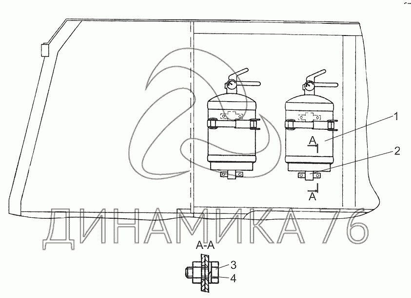 Установка огнетушителя Ш353М-3910010-Б на Ш-353М (до 2015 г.)