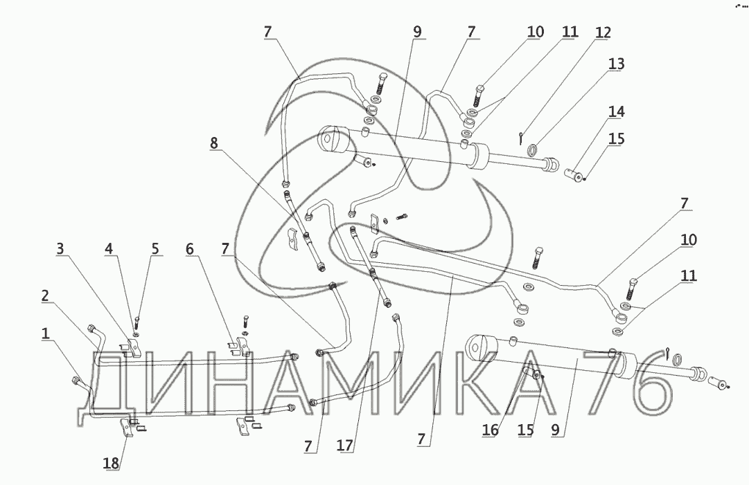 Перечень комплектующих от Гидросистема отвала на ТТР-401М