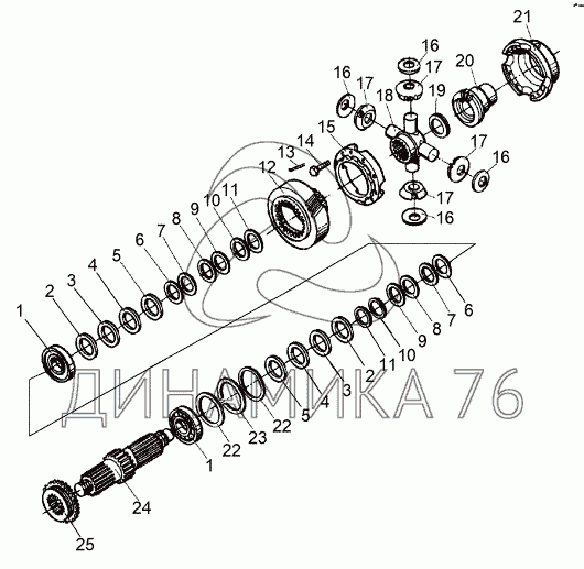Перечень комплектующих от Дифференциал межосевой 6923-2506010 на МЗКТ-69234