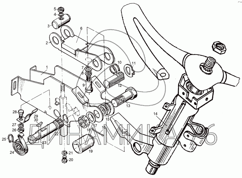 Кронштейн с колонкой 64221-3403008 — МЗКТ-69234: