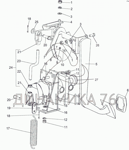 Перечень комплектующих от Привод тормозного крана на МЗКТ-69234