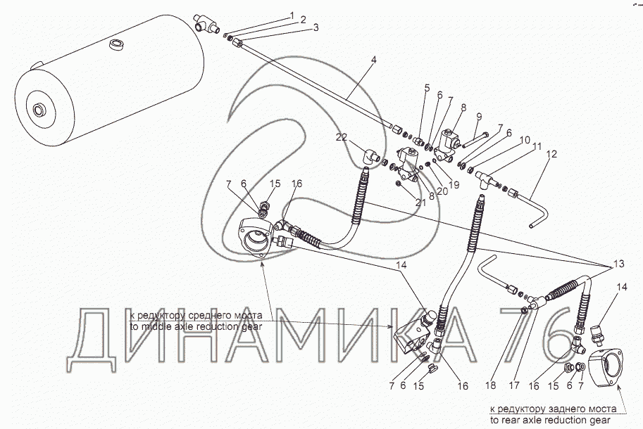 Привод управления блокировкой дифференциалов на МЗКТ-69234 (до 2010 г.)