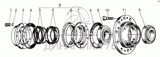 Схемы запчастей предназначены для справочных целей! Мы продаем не все запчасти от Ступица задняя 6923-3104010-10 на МЗКТ-69234, представленные в этом списке.
